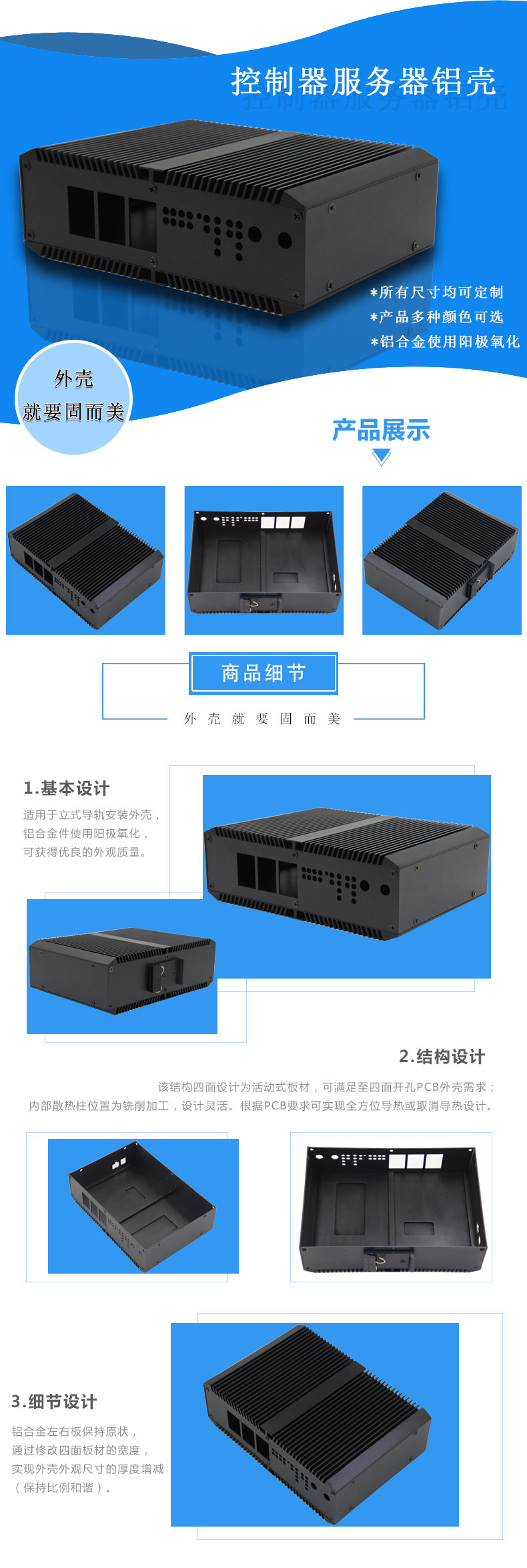 *組成結(jié)構(gòu):鋁型材右片、鈑金下片、鈑金后片、導(dǎo)軌卡扣、散熱柱、鋁型材左片、鈑金上片、散熱柱、鈑金前片